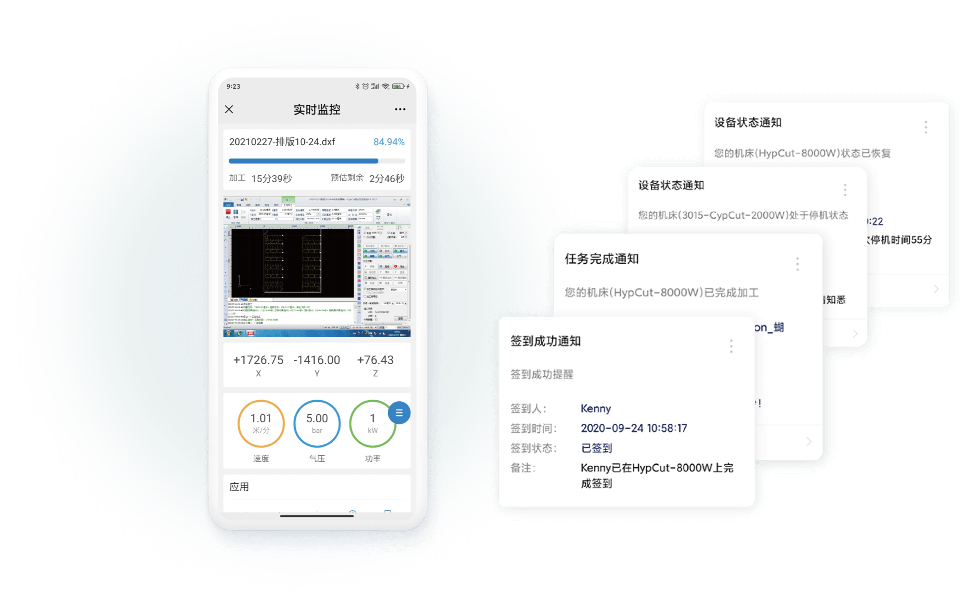 【我的机床】公众号基于激光切割机的数据采集,实现机床状况实时监控,异常状态主动通知,让使用者时刻掌握机床动态